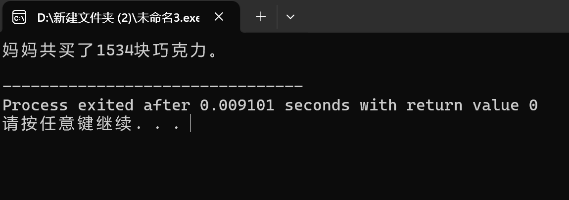 printf("妈妈共买了%d块巧克力。\n",l);