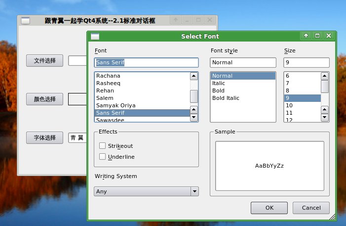 跟青翼一起学Qt4编程系列 之 2-1标准对话框