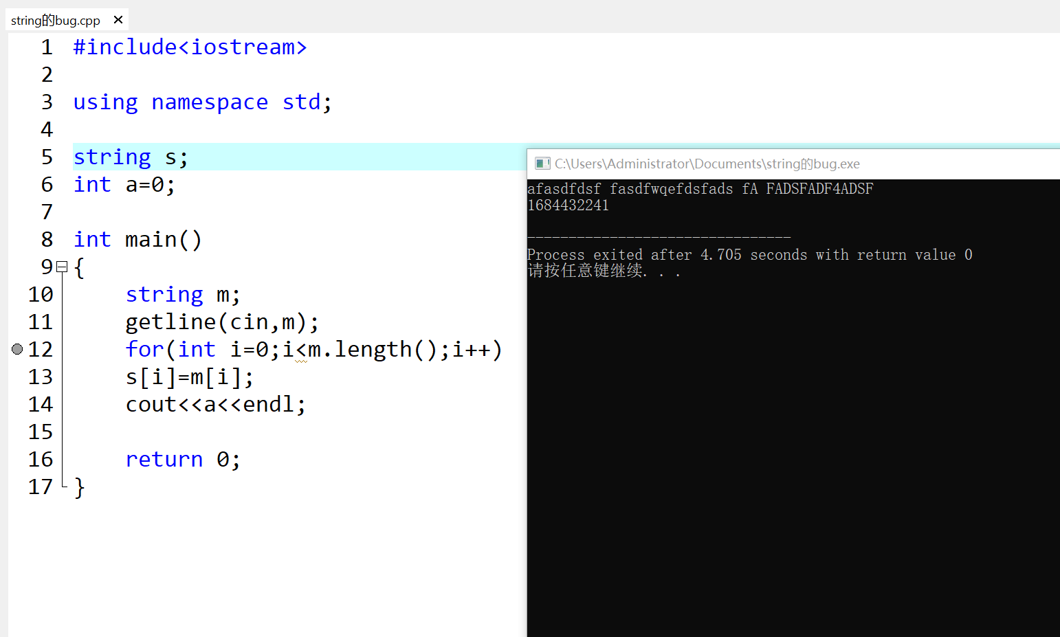 遇到的string的一个bug,貌似就是溢出吧