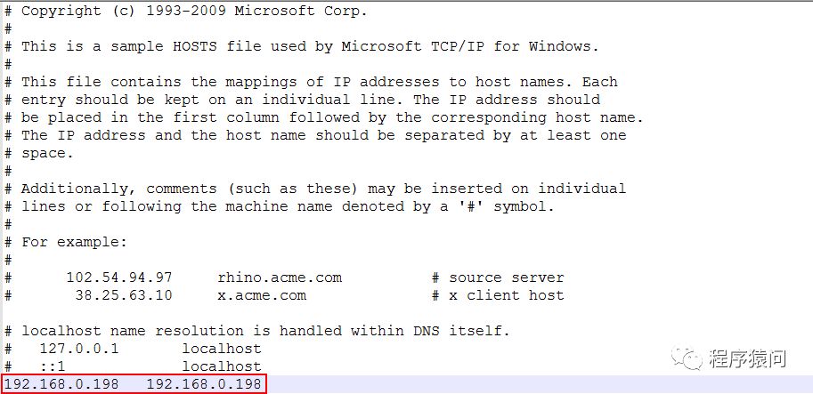 1、在文件夹:c:\windows\system32\drivers\etc 修改hosts文件,添加你的ip地址(小编的ip地址是192.168.0.198,请填写你的ip地址):