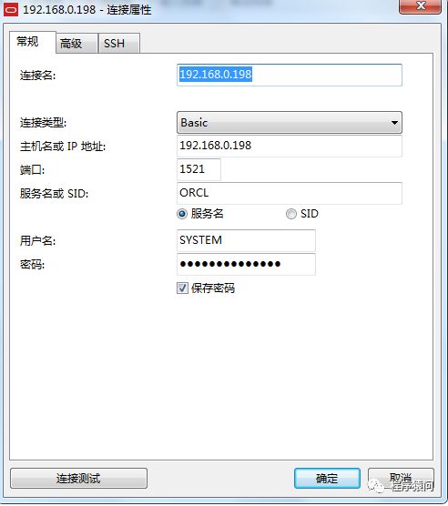 密码就是我们自行设置的密码,使用SYSTEM登录,连接测试