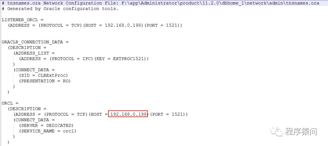 3、在同一级目录下,修改tnsnames.ora文件,将原来的电脑名称修改为自己的ip地址,如下