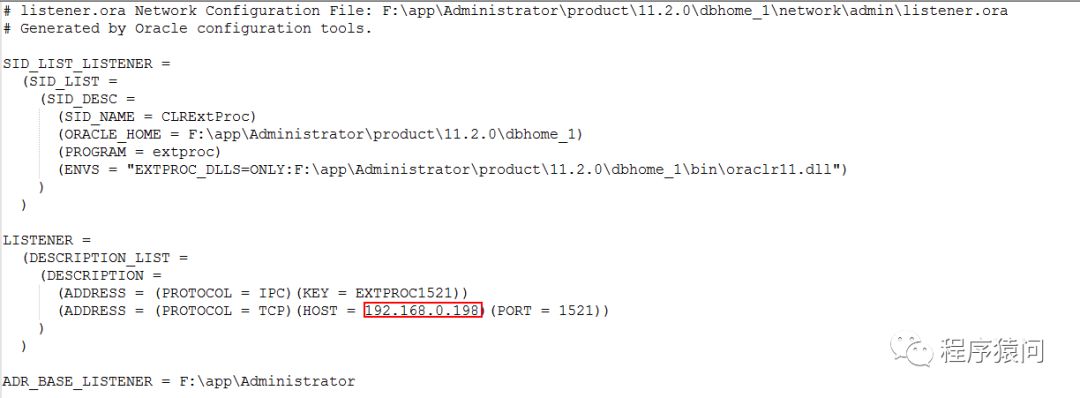 F:\app\Administrator\product\11.2.0\dbhome_1\NETWORK\ADMIN下的listener.ora文件(如果你的安装目录和小编不一样,就要自行寻找了),将原来的127.0.0.1修改为自己的ip地址,如下