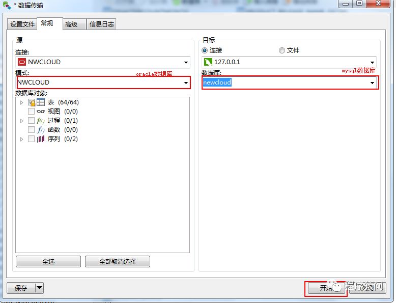如果要从mysql转成oracle,同上面操作一样,只不过源和目标是相反的,要先选择mysql数据库。