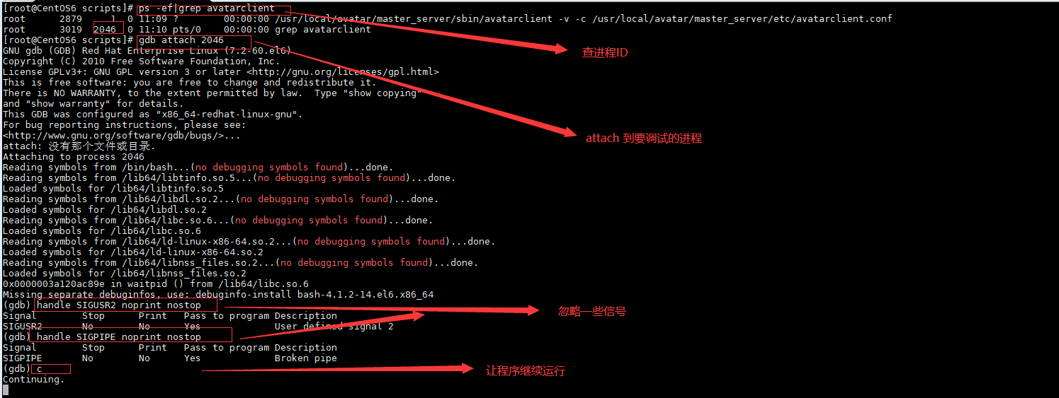 在linux平台,用gdb调试程序时,可以在gdb attach到运行中程序后,用以下命令忽略一些不关注的信号: