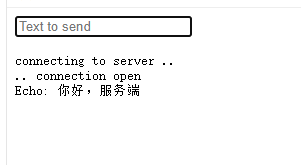 6、启动打开客户端网页并发送文字,可以看到服务端接收到了客户端发送来的消息,并将消息返回给所有的客户端,一个简单的websocket例子就完成了。