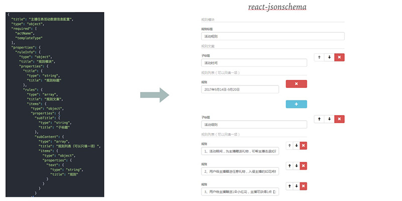 答案是: Schema First , 开发组件之前先设计Schema,通过schema生成一个form表单,达到静态数据和模板分离。如果使用React开发,可以基于react-jsonschema-form定制。静态数据和模板分离之后应该如下图: