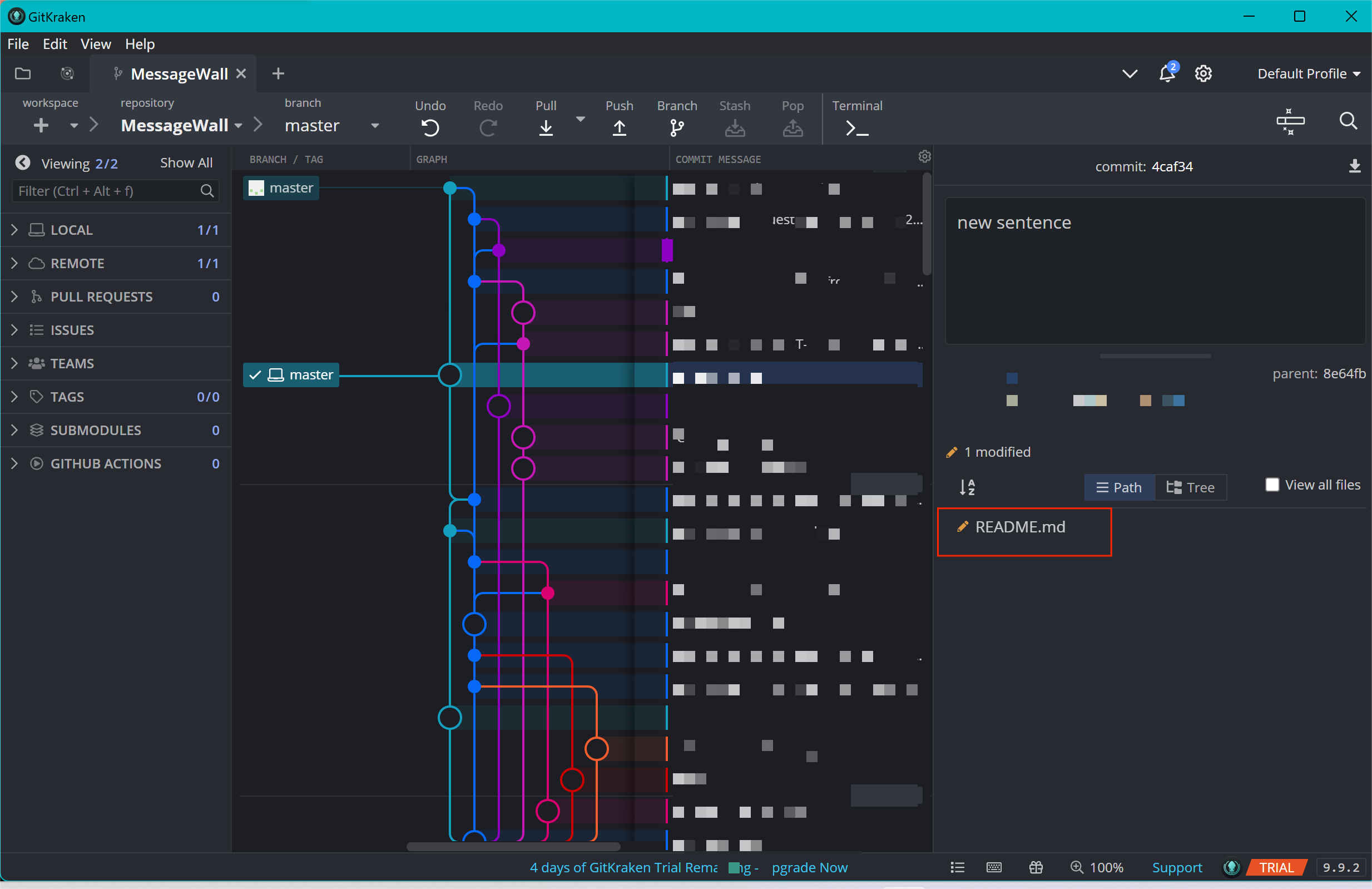 相对于前两种方法,GitKraken更加方便快捷,将指令转化为具体操作,对团队新手较为友好。