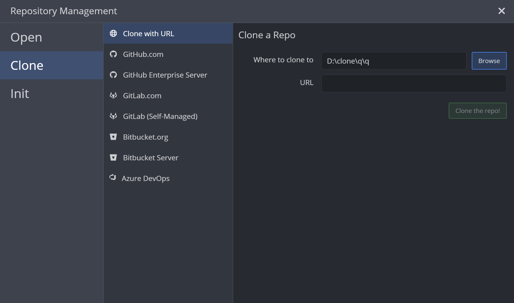 2.进入GitKraken并克隆仓库。(clone a repo)