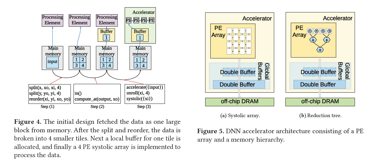 Introduces a systematic approach to precisely and concisely describe the design space of DNN accelerators as schedules of loop transformations。