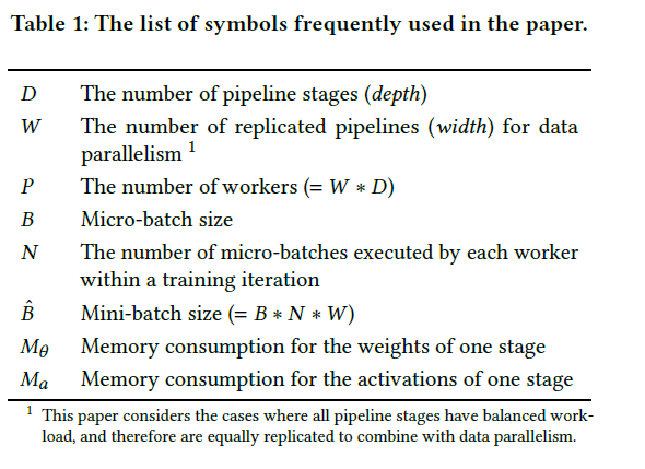 由于DAPPLE, PipeDream, and PipeDream- 2BW和Chimera中,每个时刻存在的激活值数最大为D,因此限制了 activitions memory