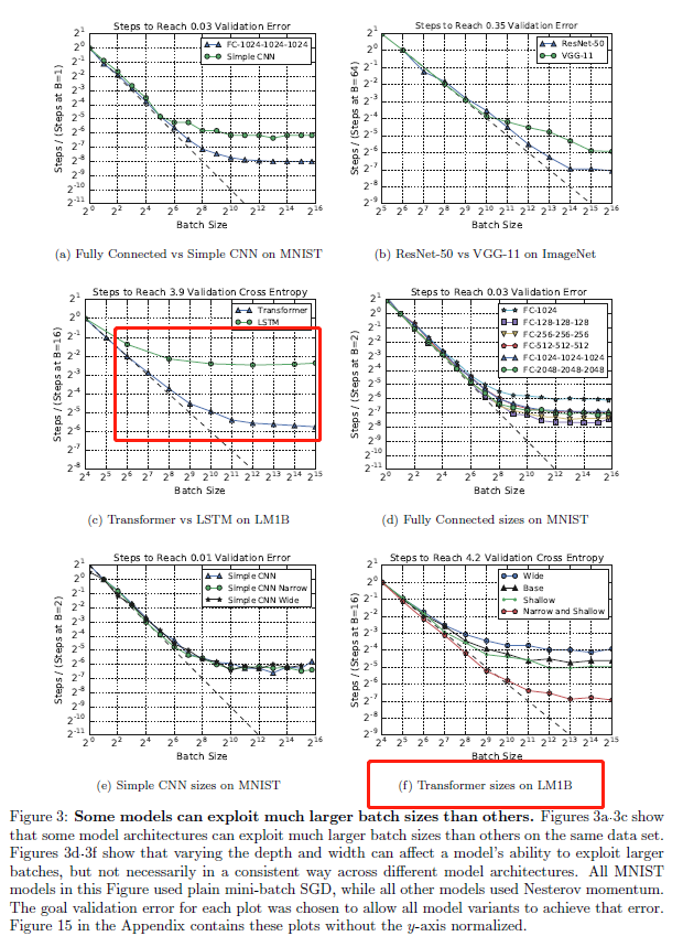 batching cannot hurt the asymptotic guarantees of steps to convergence(上面两篇论文不是说,对收敛有害,容易陷入局部极小值么?), but it could be wasteful of examples. The two extremes imply radically different guidance for practitioners, so the critical task of establishing a relationship between batch size and number of training steps remains one to resolve experimentally.