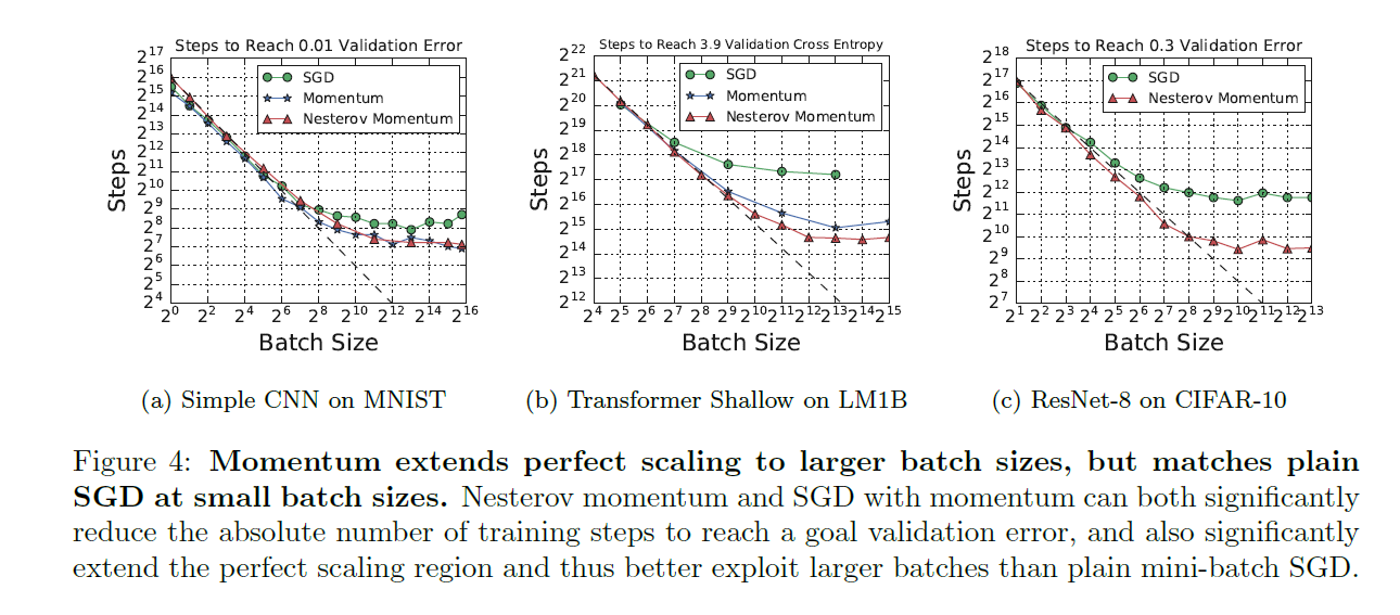 SGD with momentum (as well as Nesterov momentum) can make use of much larger batch sizes than plain SGD