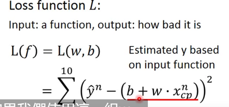 Step1:设立model 例如Y=b+w*Xcp A set of function