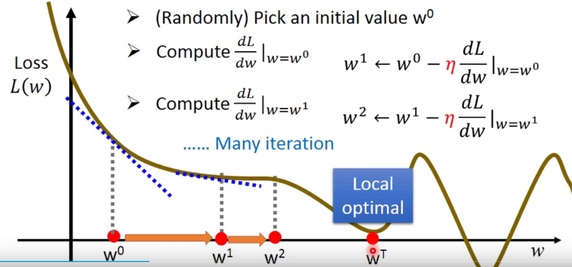 Step3:Gradient Descent 用梯度下降的方法寻找出误差最小的L 。