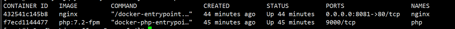 # docker run --name php -v /docker/www:/www --privileged=true -d php:7.2-fpm