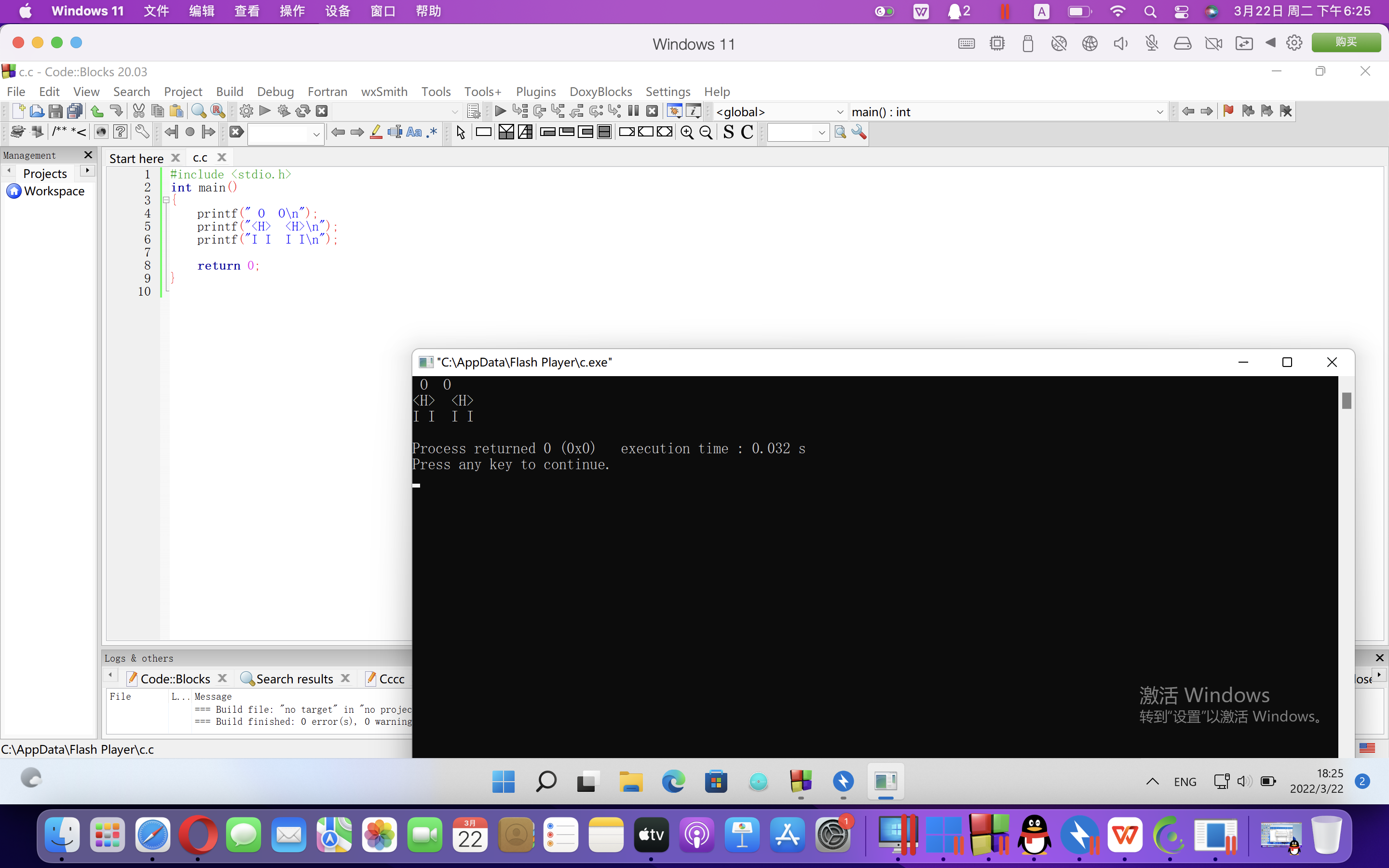 #include <stdio.h> int main() { printf(" O O\n"); printf("<H> <H>\n"); printf("I I I I\n"); return 0; }