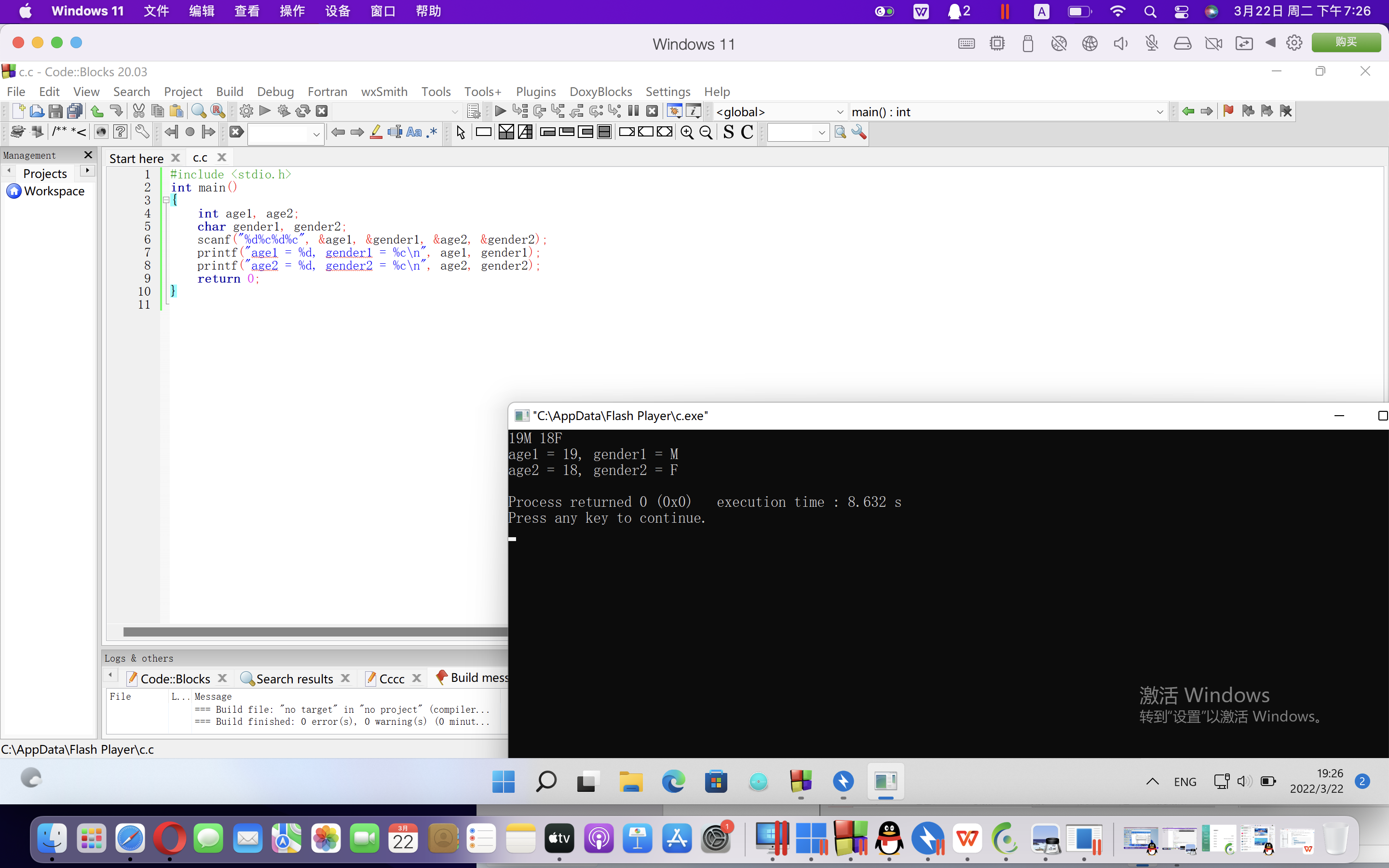 scanf("%d%c%d%c", &age1, &gender1, &age2, &gender2);