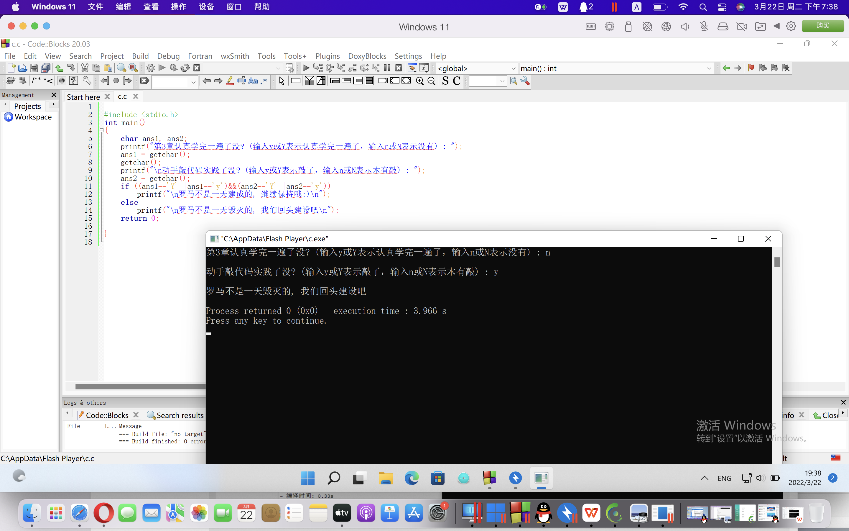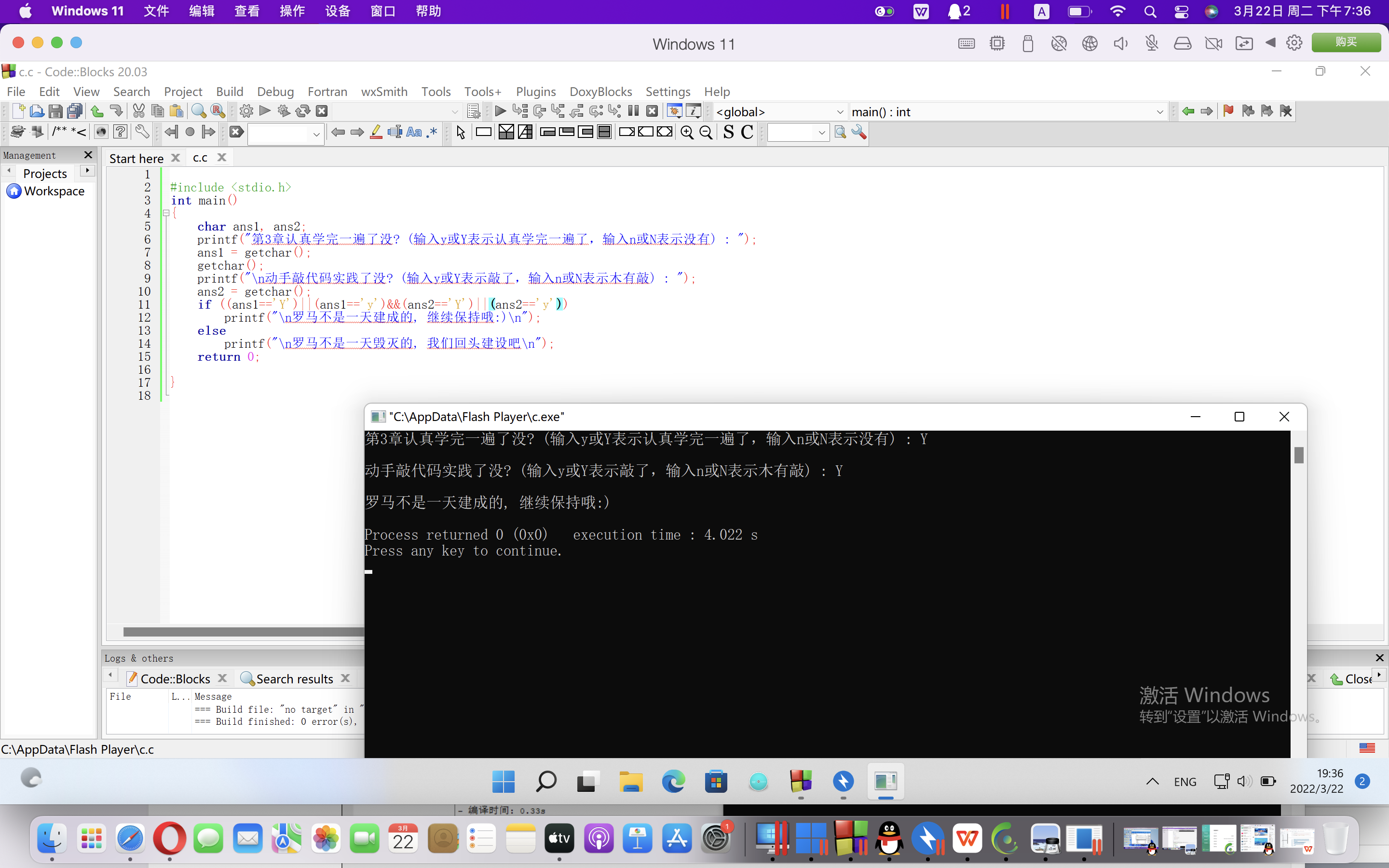 printf("\n动手敲代码实践了没? (输入y或Y表示敲了,输入n或N表示木有敲) : ");