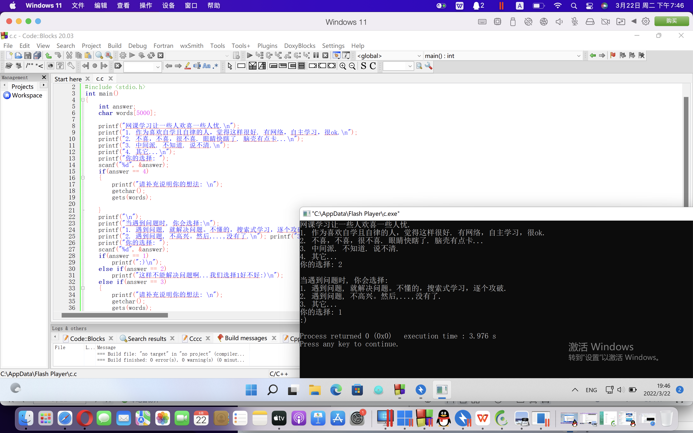 printf("2. 遇到问题, 不高兴。然后,...,没有了.\n"); printf("3. 其它...\n");