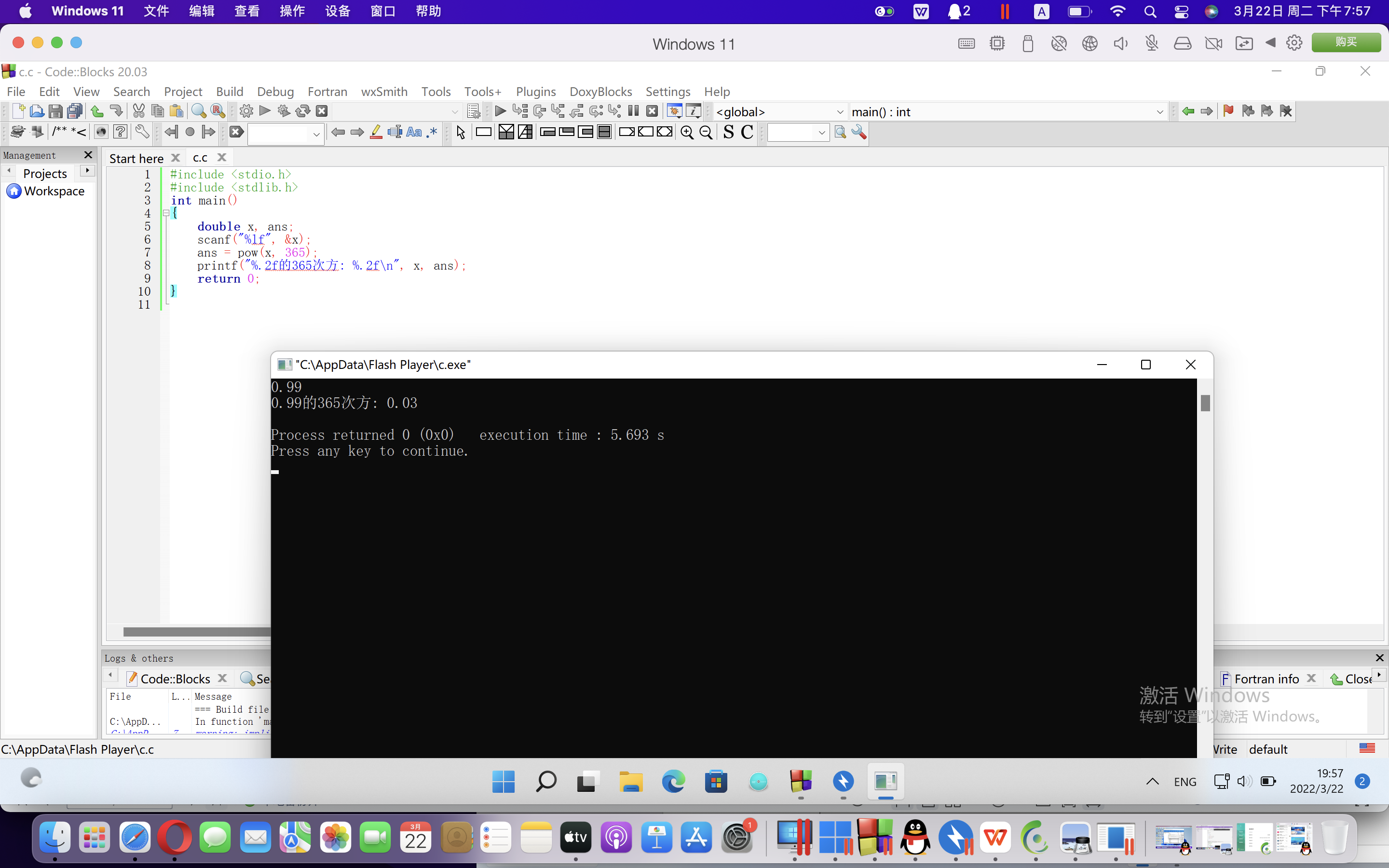 printf("%.2f的365次方: %.2f\n", x, ans);