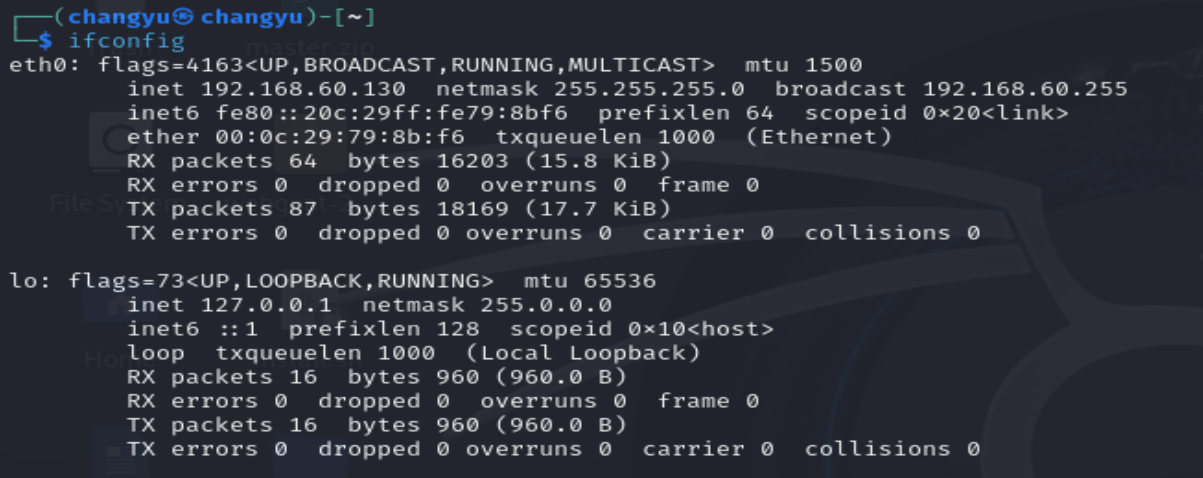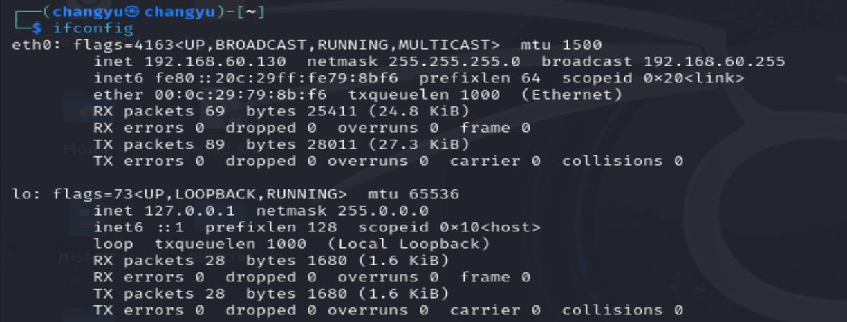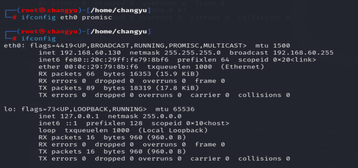 将kali网卡改为混杂模式ifconfig eth0 promisc