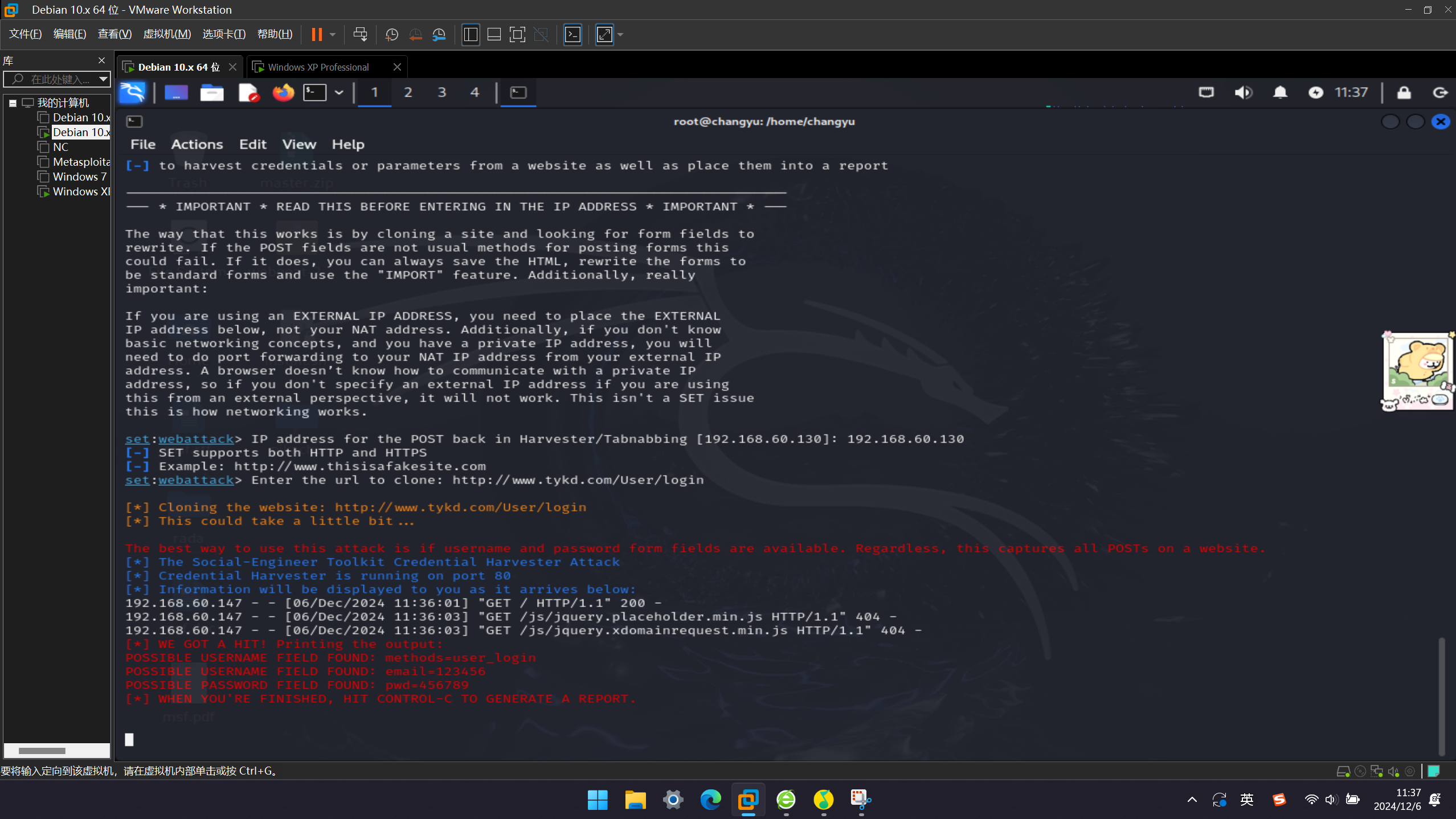 在靶机上输入emali:123456,pwd:456789,能够在攻击机上获取到输入的信息