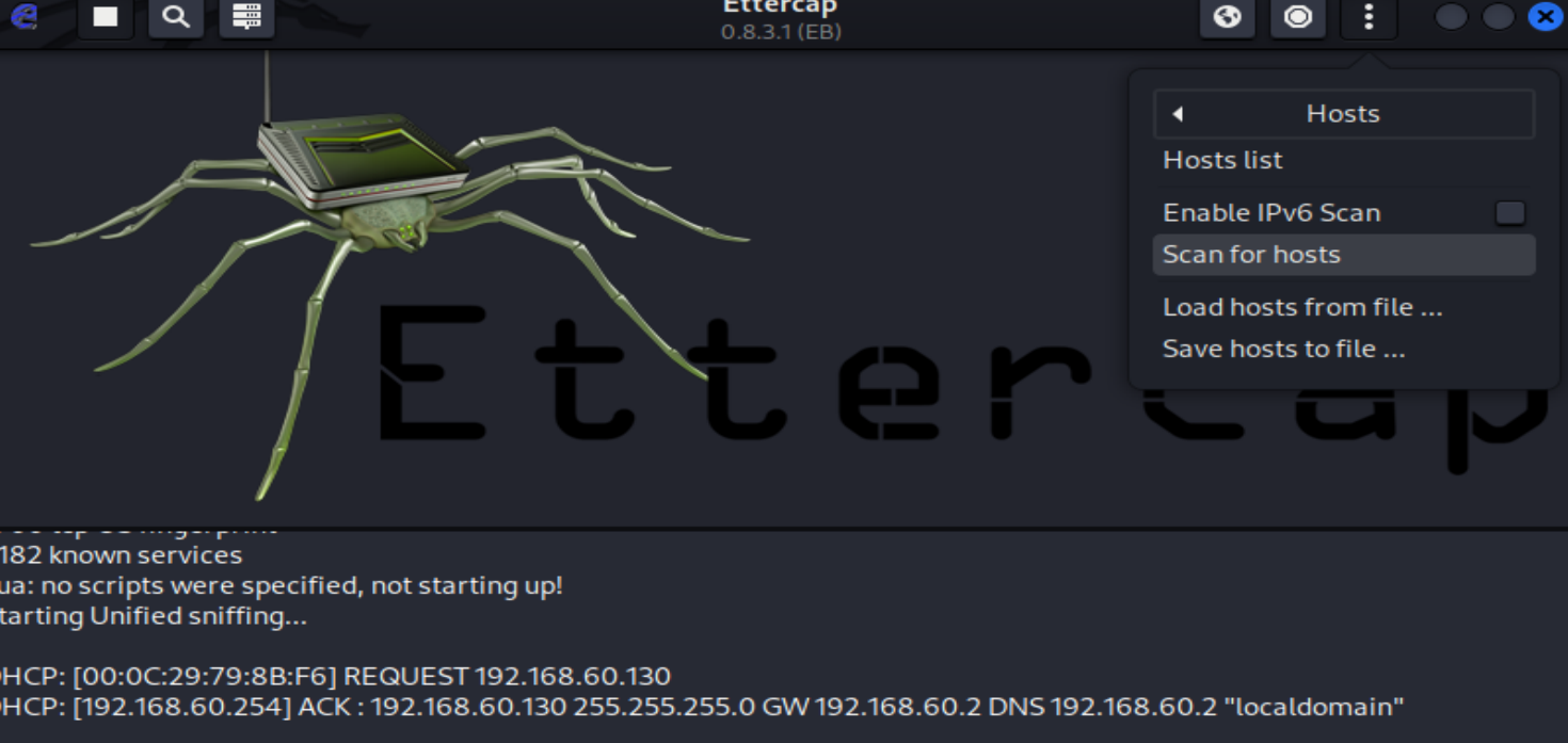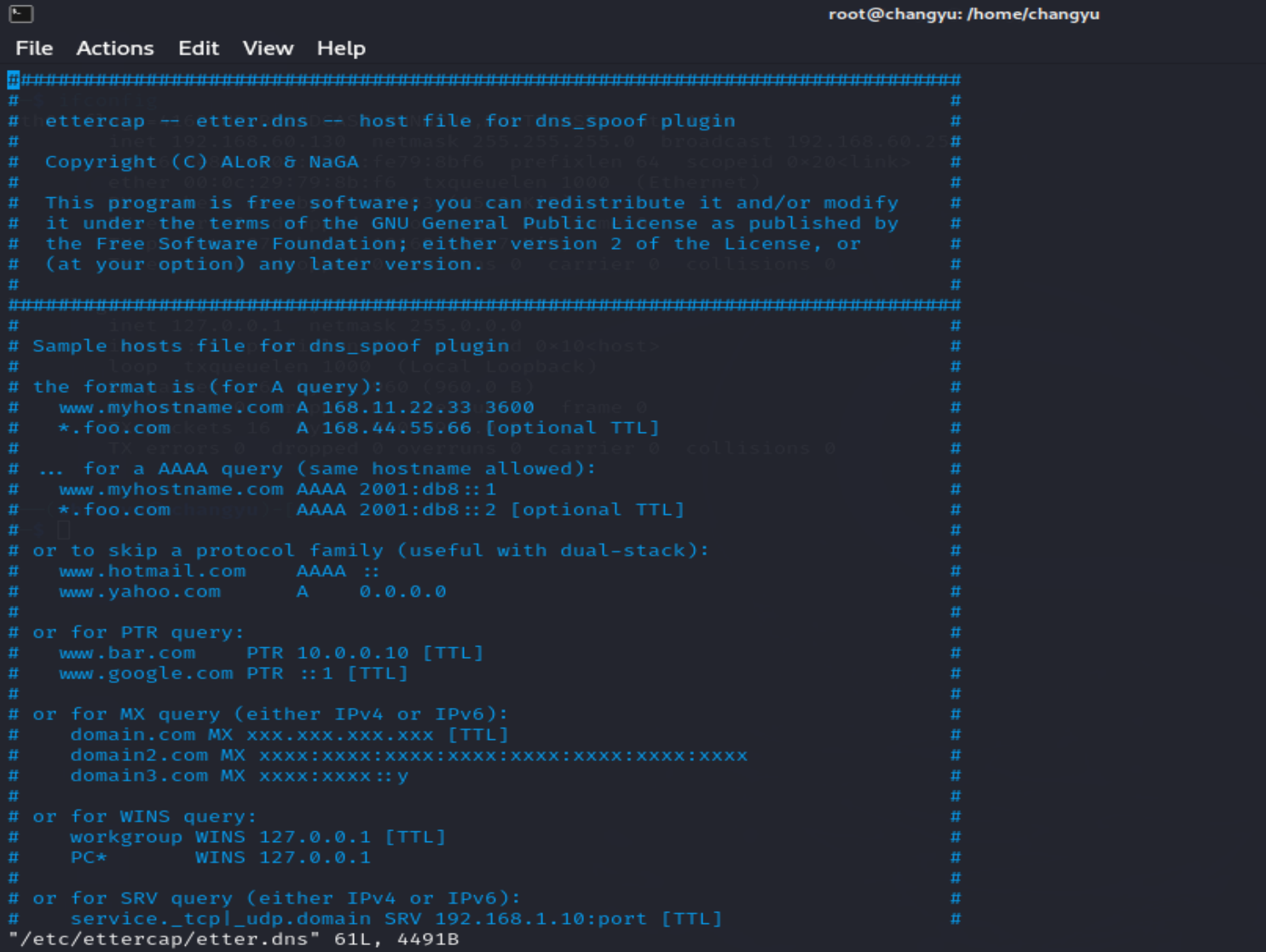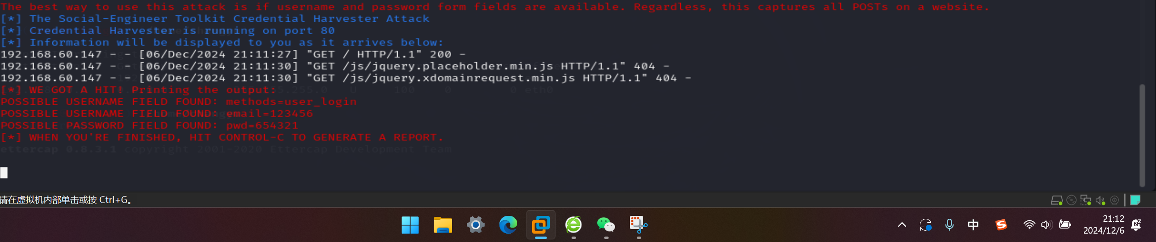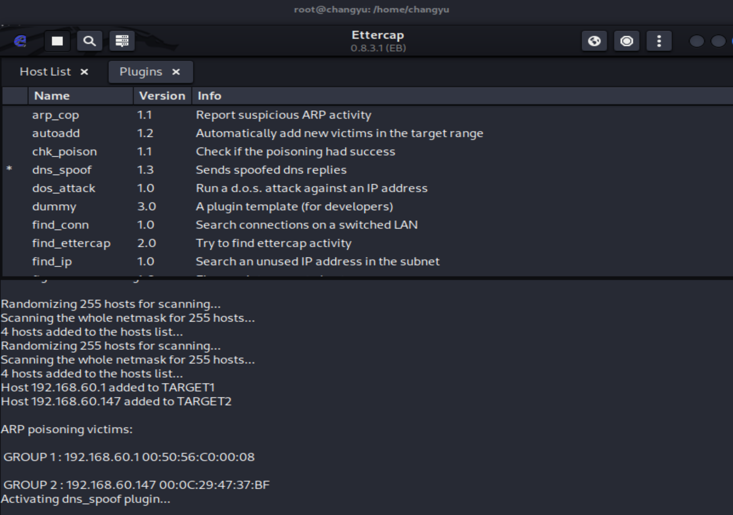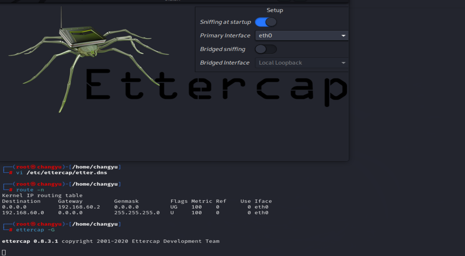 - 问题1解决方案:ettercap中设置target时应该注意192.168.60.1不一定是网关,需要根据具体情况进行调整