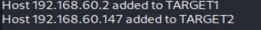 右键点击192.168.60.2将网关添加到target 1,再右键点击192.168.60.147将靶机ip地址添加到target 2