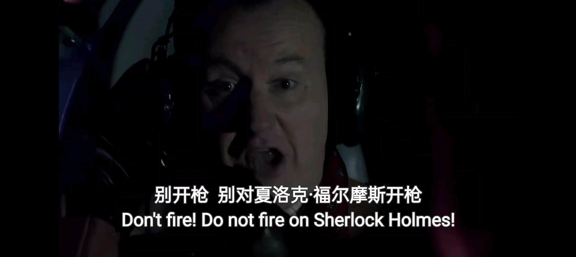 Reaction shot: At the moment when Sherlock pulls the trigger, his elder brother, who is sitting in the helicopter, shows a shocked expression. He immediately shouts into the intercom for the shooters to put down their guns and not to aim at Sherlock. Only when the soldiers put down their guns does his elder brother heave a long sigh of relief. He puts down the earphones and stares at Sherlock below.