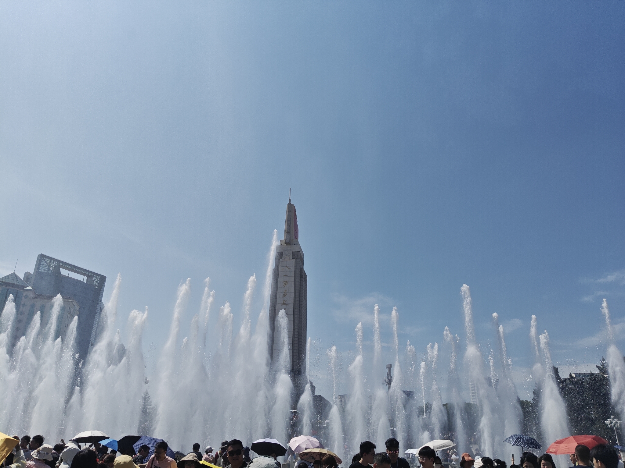 We were complained that why there so many people. But nothing could reduce our passion at the beginning of the journey. We taking many photos with our phone. An announcement was sent to our ears “Dear passengers, the music fountain show is about to start. Please watch it in an orderly manner.” Then we appreciated the stunning shows. Everyone let out cheers when the water column rushed towards the sky. When the water droplets fell, everyone ran away with laughter. I held an umbrella and moved forward.