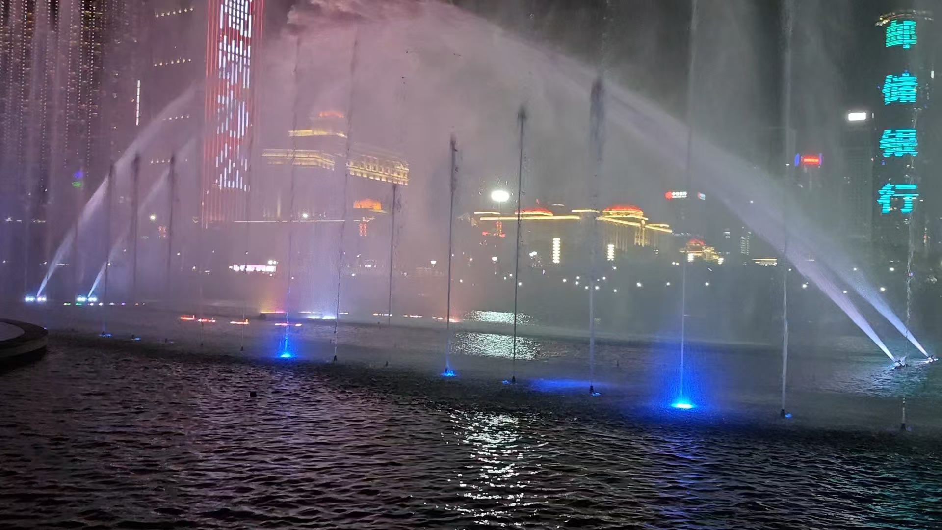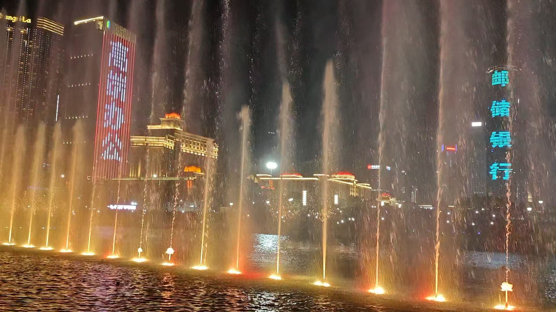 Qiushui Square was the most interested station in our plan. We arrived about one hour ahead of time and find a good place to see the music fountain show. In our waiting time, we decided to sat on the ground because we were tired. Later I found a funny thing that people around us also sat down gradually. At that moment, I felt a sense of proud of us. Our young people were seeking a new lifestyle in the regular and demanding society.