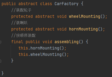 总结:模板方法模式是我们较为常用的一种模式,简单的来说就是父类提供一个固定的模板顺序,子类去实现里面的操作方法即可,如上述代码,装配顺序是固定的。