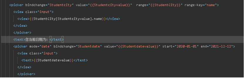 评价:发现在老师和学生的js界面都有以下定义(提供自定义picker的数组队列)