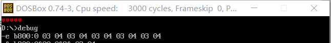 从b800:0开始的内存单元开始,依次写入十六进制数据03 04,重复写5次