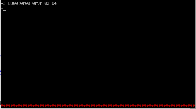 把内存单元区间b800:0f00~b800:0f9f连续160个字节,依次重复填充十六进制数据03 04