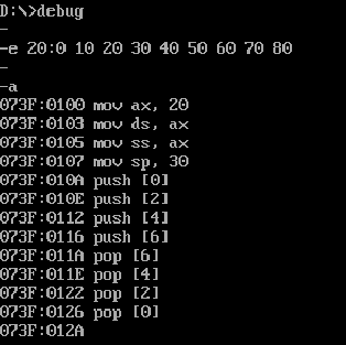 - 在debug中使用e命名,向内存单元写入数据。