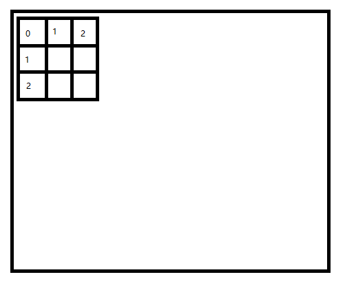(左上角这个九宫格里的任何格子 行号除以3都为0 列号除以3都为0 而下面的九宫格行号除以3为1 列号除以3为0)