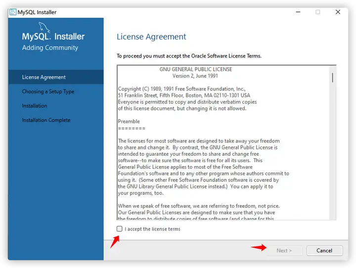 - 接受条款,下一步,准备开始安装