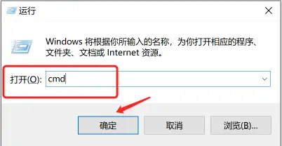 1.Windows+R出现运行界面,然后输出cmd点击请确定