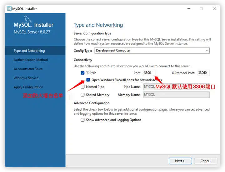 注意:MySQL默认使用3306端口,如果这个端口被占用了,可以设置为其他的端口。但是,最优的选择是查找谁占用了3306端口,并修改其他的程序占用,最好保证3306端口是留给MySQL的。