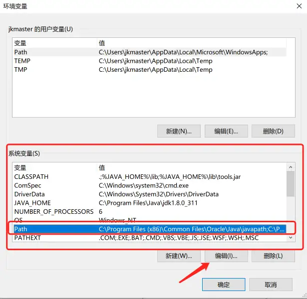 16.在《系统变量s》中找到Path选中之后点击编辑