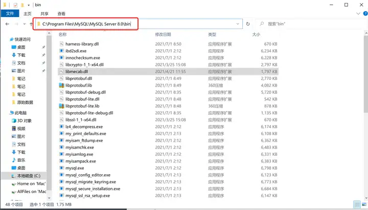 14.请牢记该路径,配置环境变量时需要C:\Program Files\MySQL\MySQL Server 8.0\bin