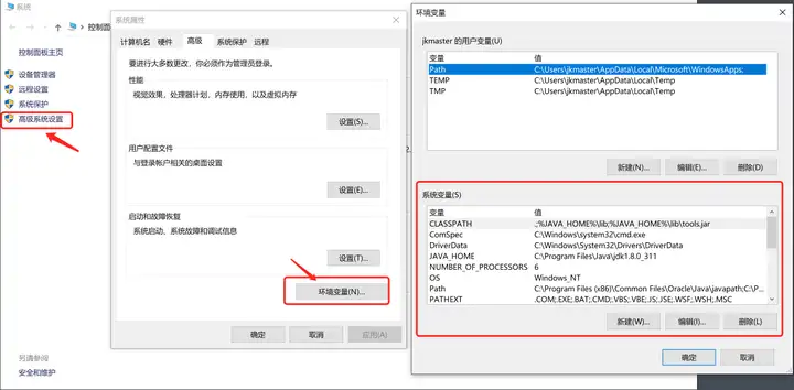 15.接下来需要配置环境变量,通过《控制面板》->《系统和安全》->《系统》->《高级系统设置》->《环境变量》