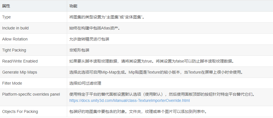 设置SpriteAtlas的属性