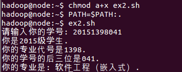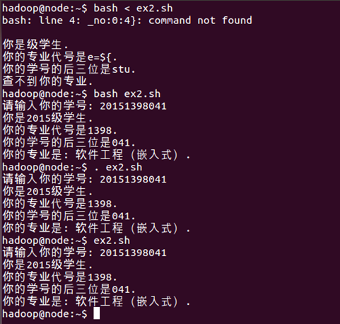若提示“找不到文件major_code.txt”,请将公邮实验文件夹中的major_code.txt拷贝至ex1.sh所在目录,重新执行一次。