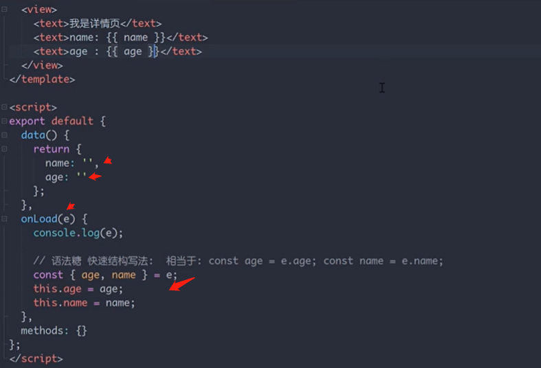 路由接参(这接收参数的页面中,onLoad事件接收打印参数值并赋值渲染)