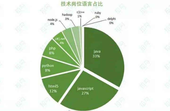 据统计,国外的前端开发人员和后端开发人员比例约为1:1,但是国内比例却在1:3以下,前端开发职位的人才缺口巨大,贴一张编程语言需求,JavaScript是目前需求最多的编程语言之一(如下图),前端企业用人数量已经远远超过主流编程语言Java、ASP、和iOS等的开发人员的数量。