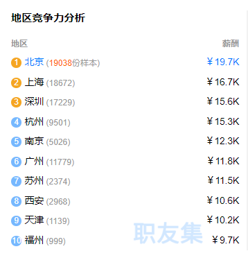 各地区前端程序员平均工资排行榜(数据截止到2020年11月4日)