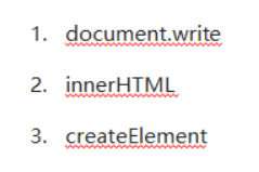 // 1. document.write() 创建元素 如果页面文档流加载完毕,再调用这句话会导致页面重绘